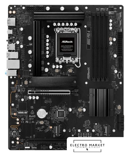 mATX, чипсет Intel B860, память 4xDDR5/DDR5 CUDIMM до 8666 МГц, слоты: 2xPCIe x16 5.0, 1xPCIe x1, 2xM.2, 7+1+1+1 фаз питания