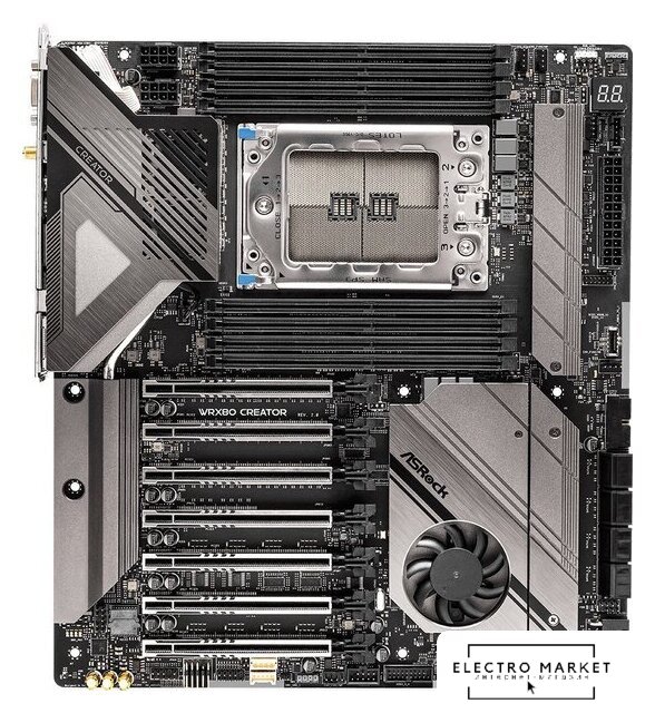 eATX, чипсет AMD WRX80, память 8xDDR4 до 3200 МГц, слоты: 7xPCIe x16 4.0, 3xM.2, 802.11ax (Wi-Fi 6)+Bluetooth 5.1