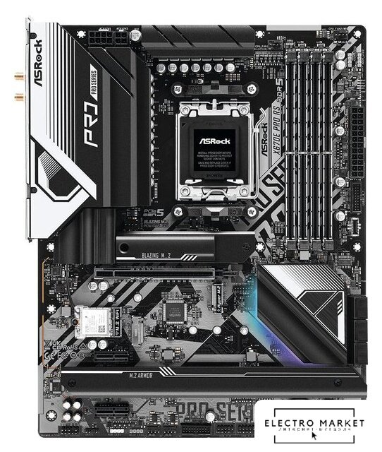 ATX, сокет AMD AM5, чипсет AMD X870E, память 4xDDR5 до 8200 МГц, слоты: 2xPCIe x16 5.0, 5xM.2, 802.11be (Wi-Fi 7)+Bluetooth 5.4, 18+2+2 фаз питания