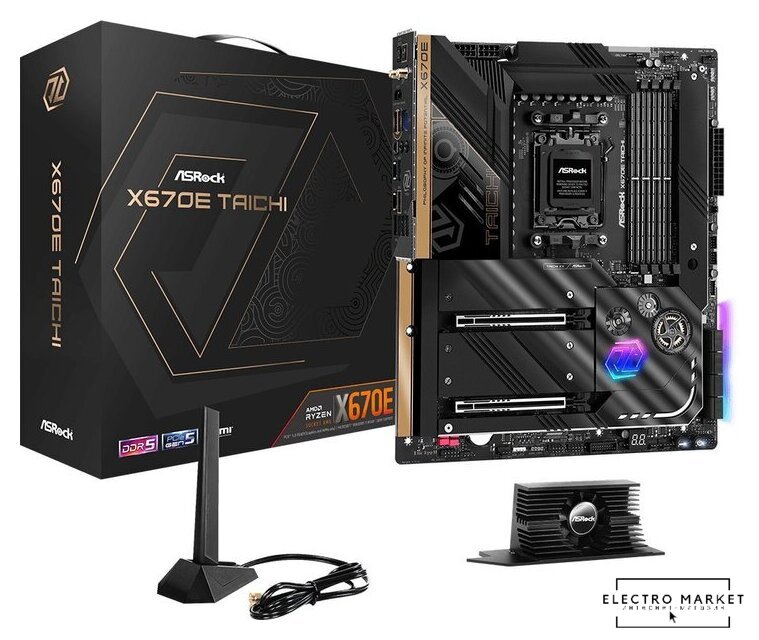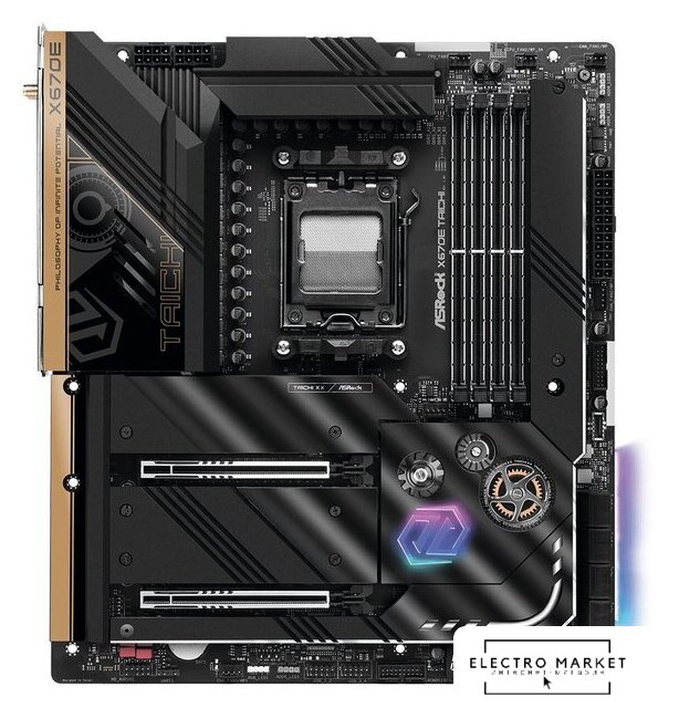 ATX, сокет AMD AM5, чипсет AMD X670E, память 4xDDR5 до 7600 МГц, слоты: 1xPCIe x16 5.0, 2xPCIe x1, 5xM.2, 802.11ax (Wi-Fi 6E)+Bluetooth 5.2, 14+2+1 фаз питания