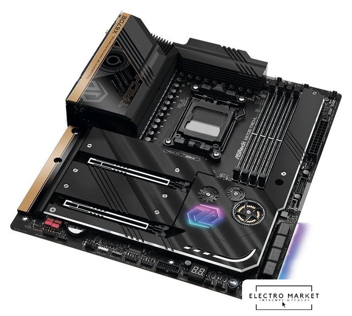 ATX, сокет AMD AM5, чипсет AMD X870E, память 4xDDR5 до 8600 МГц, слоты: 3xPCIe x16 5.0, 4xM.2, 802.11be (Wi-Fi 7)+Bluetooth 5.3, 16+2+2 фаз питания