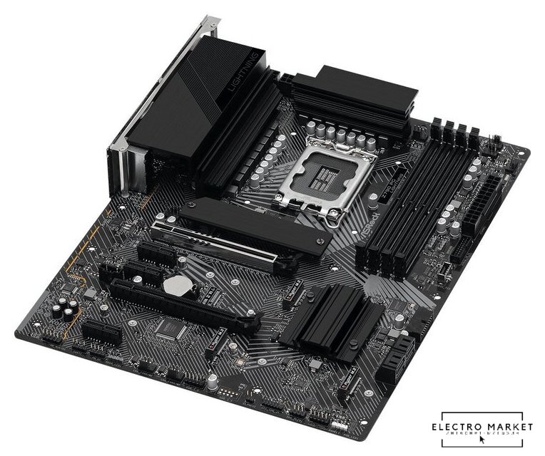 mATX, сокет Intel LGA1700, чипсет Intel B760, память 4xDDR5 до 7200 МГц, слоты: 3xPCIe x16, 4xM.2, 802.11ax (Wi-Fi 6)+Bluetooth 5.2