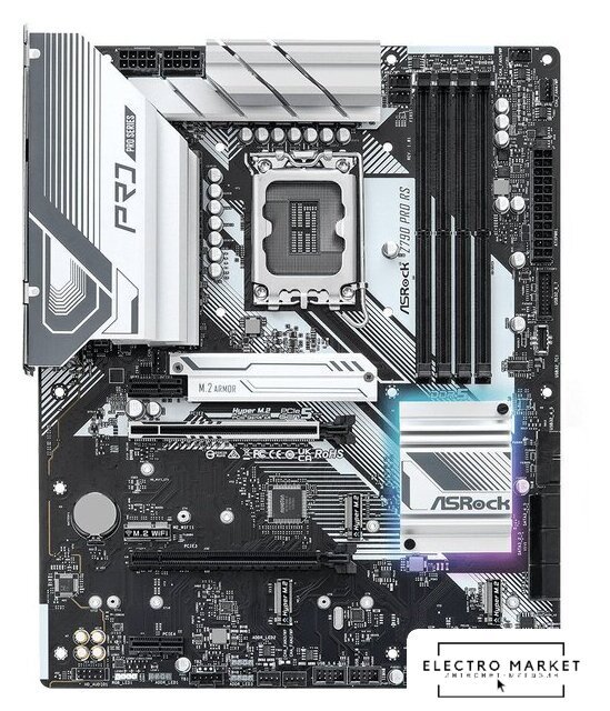 ATX, сокет Intel LGA1700, чипсет Intel Z790, память 4xDDR4 до 5333 МГц, слоты: 3xPCIe x16 5.0, 1xPCIe x1, 4xM.2, 802.11ax (Wi-Fi 6E)+Bluetooth 5.3