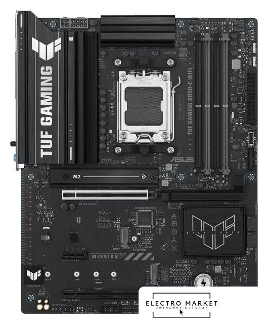 ATX, чипсет AMD B850, память 4xDDR5 до 8200 МГц, слоты: 4xPCIe x16 5.0, 3xM.2, 802.11ax (Wi-Fi 6E)+Bluetooth 5.3, 8+2+2 фаз питания
