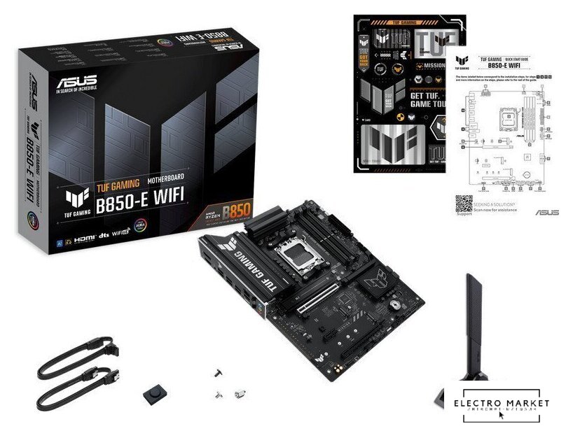 Комплектация | - два кабеля SATA- Wi-Fi Q антенна - монтажный комплект для M.2- TUF Gaming стикер- документация |