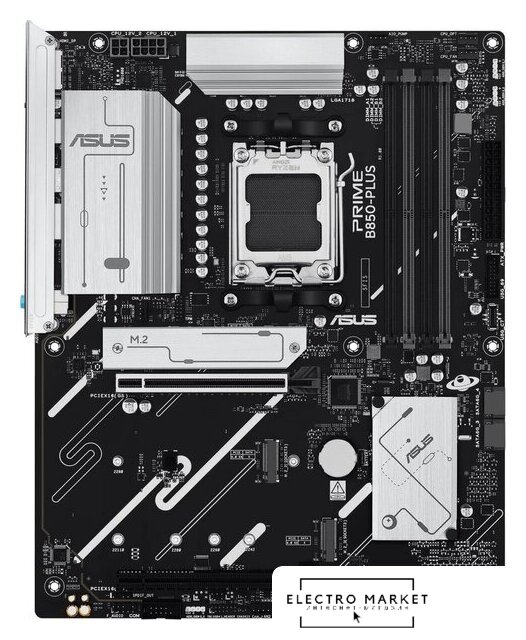 ATX, чипсет AMD B850, память 4xDDR5 до 8000 МГц, слоты: 4xPCIe x16 5.0, 3xM.2, 802.11ax (Wi-Fi 6E)+Bluetooth 5.3, 8+2+1 фаз питания