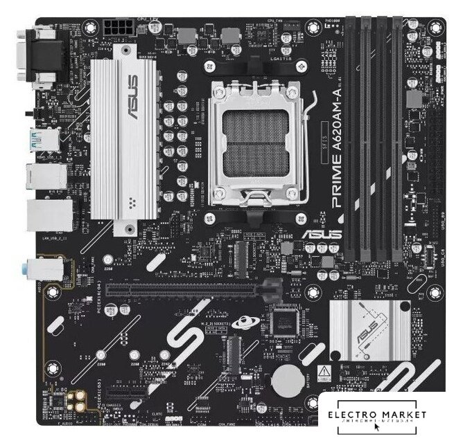mATX, сокет AMD AM5, чипсет AMD B650, память 4xDDR5 до 7600 МГц, слоты: 3xPCIe x16 4.0, 2xM.2