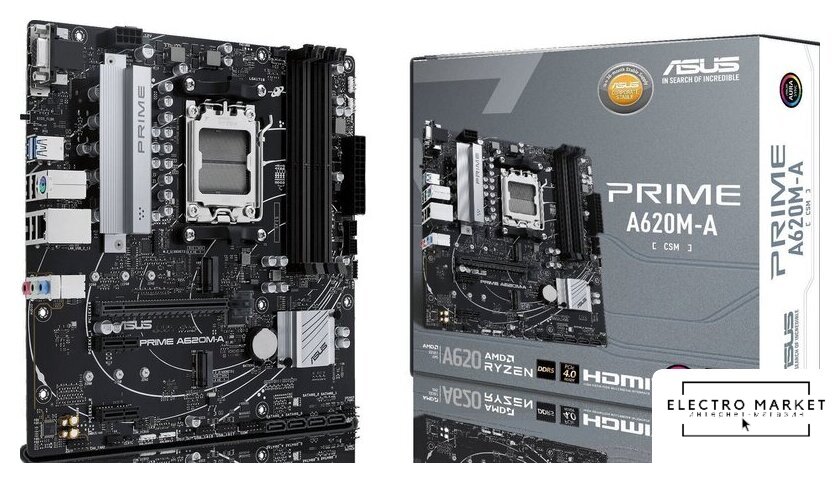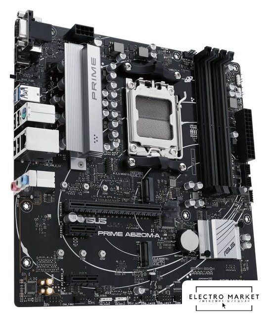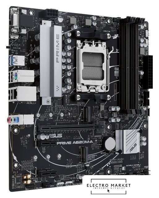 mATX, сокет AMD AM5, чипсет AMD A620, память 4xDDR5, слоты: 1xPCIe x16, 2xPCIe x1, 2xM.2