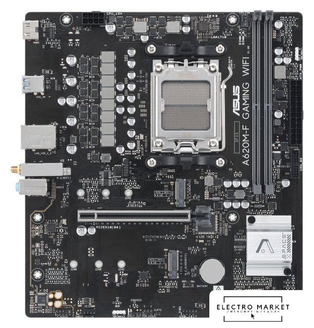 mATX, сокет AMD AM5, чипсет AMD B650, память 2xDDR5 до 7200 МГц, слоты: 1xPCIe x16 4.0, 1xPCIe x1, 1xM.2, 5+2+2 фаз питания