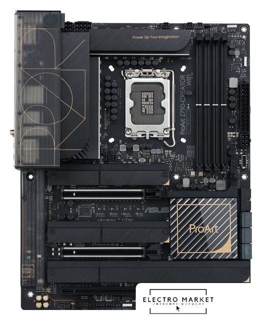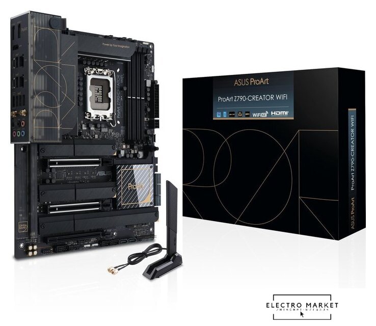 ATX, сокет Intel LGA1700, чипсет Intel Z790, память 2xDDR5 до 8400 МГц, слоты: 2xPCIe x16 5.0, 2xPCIe x4, 5xM.2, 802.11be (Wi-Fi 7)+Bluetooth 5.4, 24+0+2 фаз питания