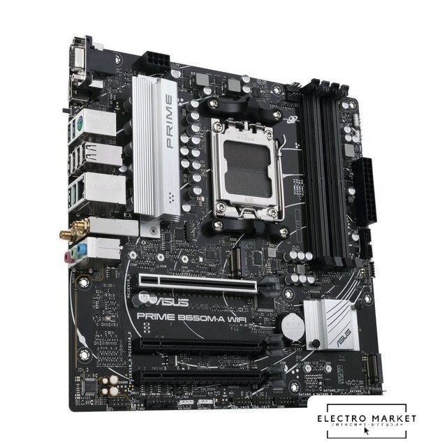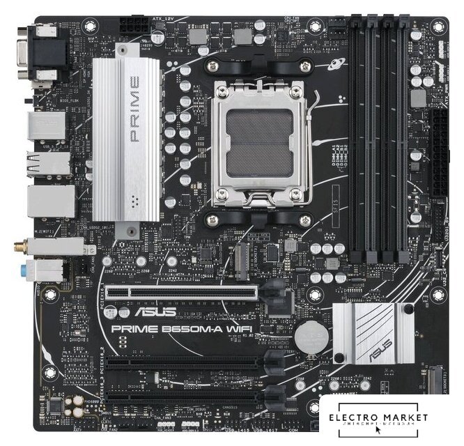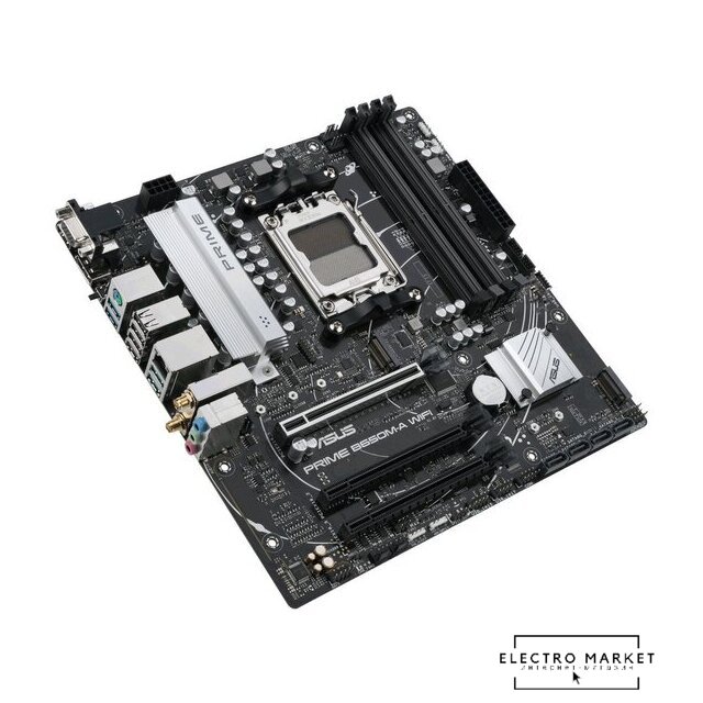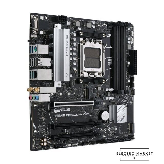 mATX, сокет AMD AM5, чипсет AMD B650, память 4xDDR5 до 7600 МГц, слоты: 1xPCIe x16, 2xPCIe x1, 2xM.2, 802.11ax (Wi-Fi 6)+Bluetooth 5.2