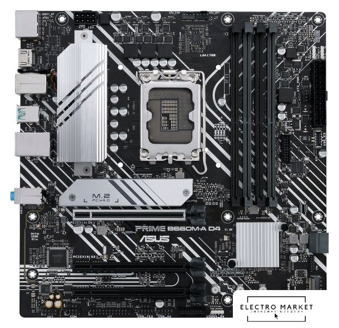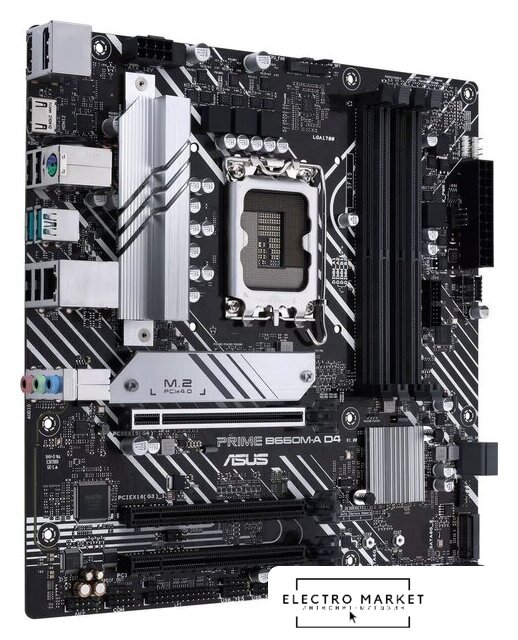 mATX, сокет Intel LGA1700, чипсет Intel B660, память 4xDDR4, слоты: 2xPCIe x16, 1xPCIe x1, 2xM.2