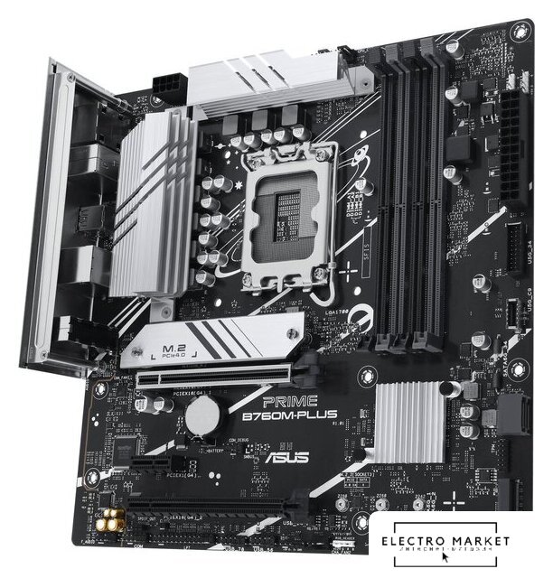 mATX, сокет Intel LGA1700, чипсет Intel B760, память 4xDDR4 до 5333 МГц, слоты: 3xPCIe x16 4.0, 2xM.2, 802.11ax (Wi-Fi 6)+Bluetooth 5.2