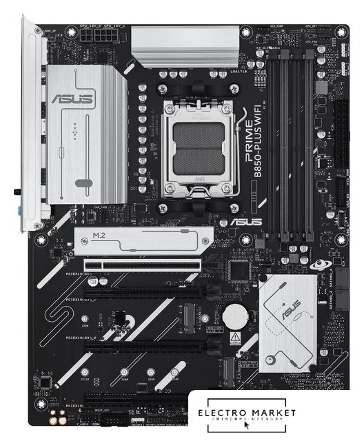 mATX, чипсет AMD B850, память 4xDDR5 до 8000 МГц, слоты: 1xPCIe x16 5.0, 1xPCIe x1, 3xM.2, 802.11ax (Wi-Fi 6E)+Bluetooth 5.3, 8+2+1 фаз питания