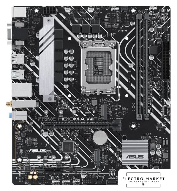 mATX, сокет Intel LGA1700, чипсет Intel H610, память 2xDDR4 до 3200 МГц, слоты: 1xPCIe x16 4.0, 1xPCIe x1, 2xM.2, 802.11ac (Wi-Fi 5)+Bluetooth 5.0