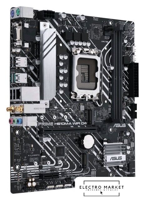 mATX, сокет Intel LGA1700, чипсет Intel H610, память 2xDDR5 до 5600 МГц, слоты: 1xPCIe x16 4.0, 1xPCIe x1, 2xM.2, 802.11ac (Wi-Fi 5)+Bluetooth 5.0