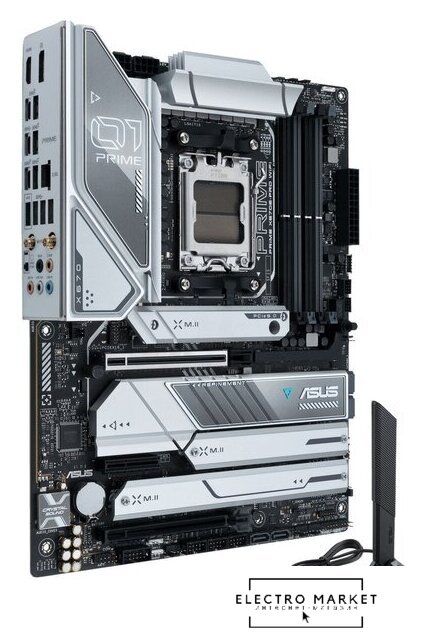 eATX, сокет AMD AM5, чипсет AMD X870E, память 4xDDR5 до 8200 МГц, слоты: 2xPCIe x16 5.0, 4xM.2, 802.11be (Wi-Fi 7)+Bluetooth 5.4, 24+2+1 фаз питания