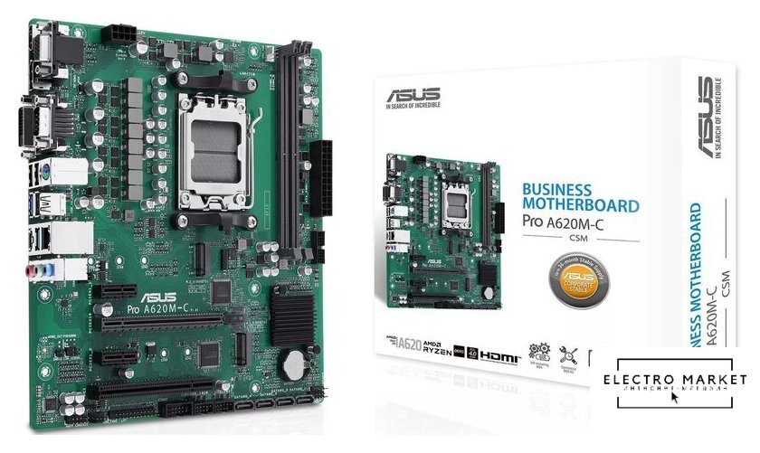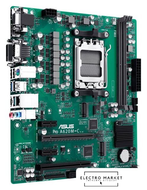 mATX, сокет AMD AM5, чипсет AMD A620, память 4xDDR5 до 7600 МГц, слоты: 1xPCIe x16 4.0, 2xPCIe x1, 2xM.2