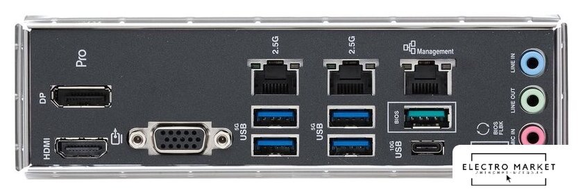 mATX, сокет Intel LGA1700, чипсет Intel B760, память 4xDDR4 до 5333 МГц, слоты: 2xPCIe x16 5.0, 2xPCIe x1, 2xM.2, 802.11ax (Wi-Fi 6E)+Bluetooth 5.3, 12+1 фаз питания