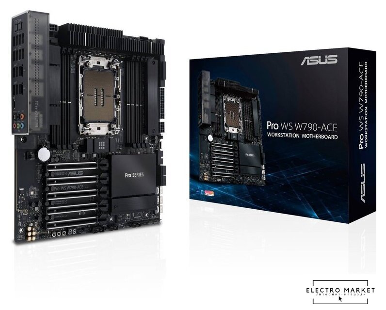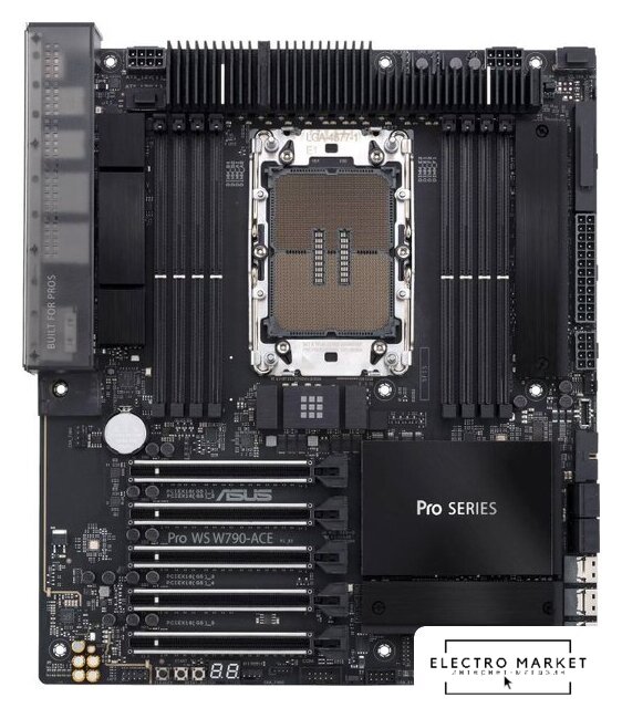 eATX, сокет Intel LGA4677, чипсет Intel W790, память 16xDDR5 до 4800 МГц, слоты: 6xPCIe x16 5.0, 0xM.2