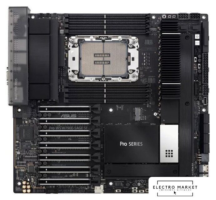 eATX, сокет Intel LGA4677, чипсет Intel W790, память 16xDDR5 до 4800 МГц, слоты: 6xPCIe x16 5.0, 0xM.2