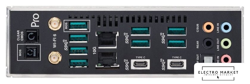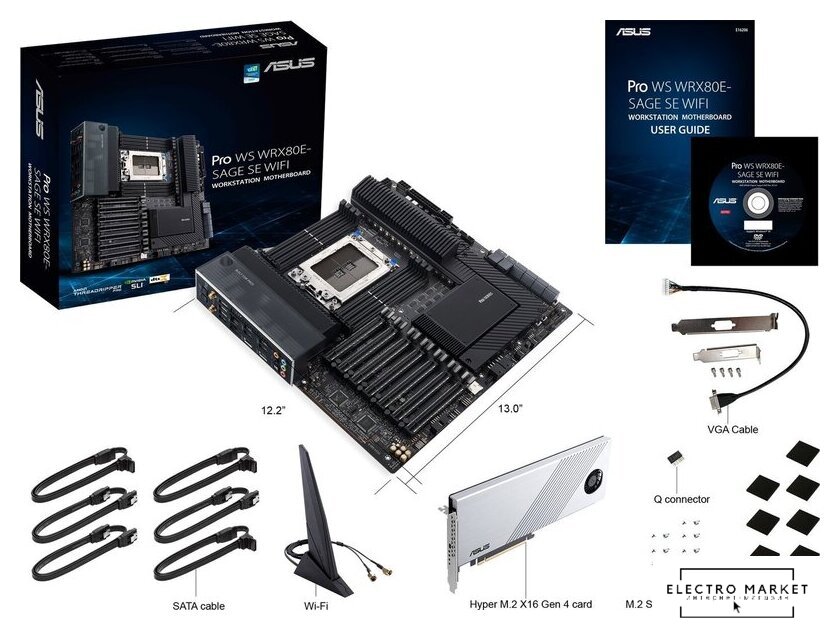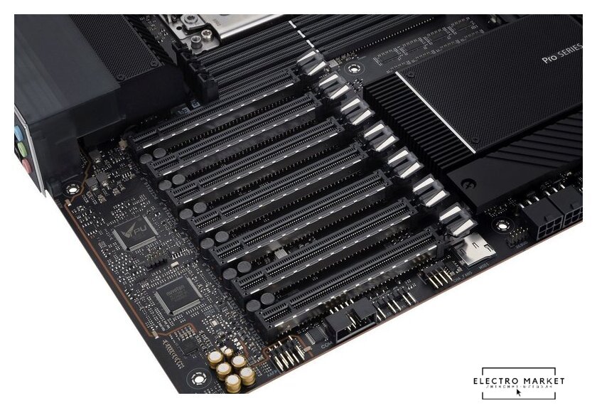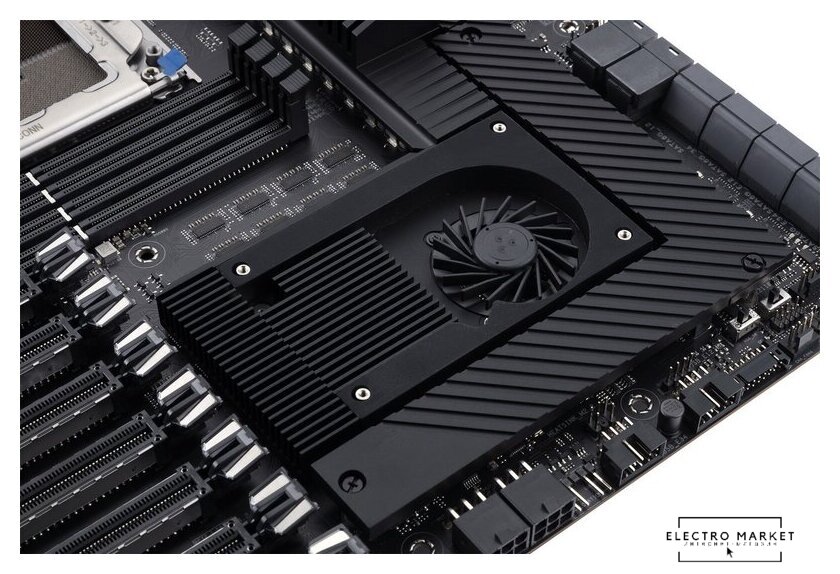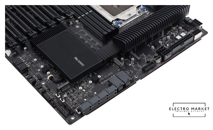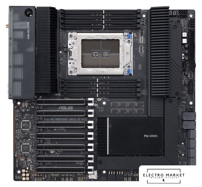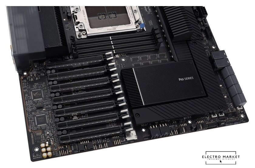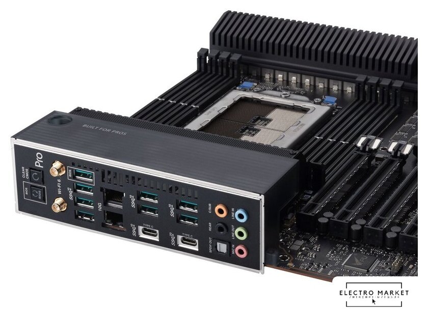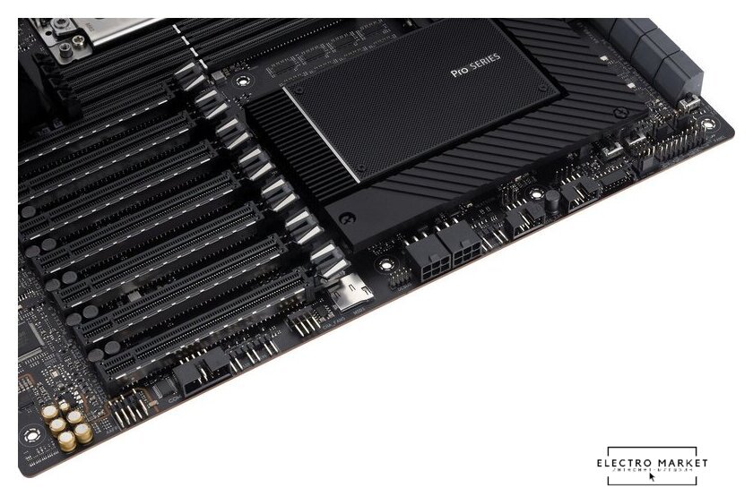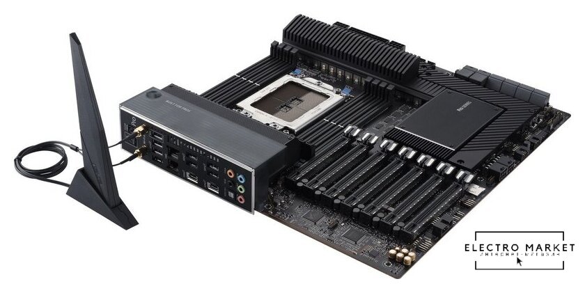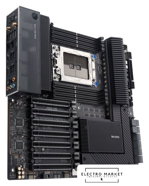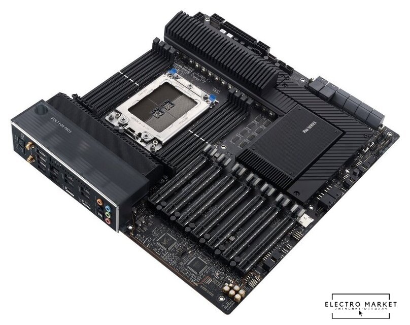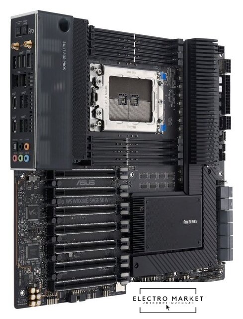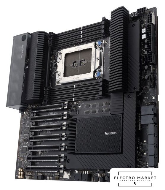 ATX, сокет AMD WRX8, чипсет AMD WRX80, память 8xDDR4 до 4400 МГц, слоты: 7xPCIe x16 4.0, 2xM.2, 802.11ax (Wi-Fi 6E)+Bluetooth 5.3, 8 фаз питания