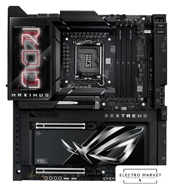 eATX, сокет Intel LGA1851, чипсет Intel Z890, память 4xDDR5/DDR5 CUDIMM до 9600 МГц, слоты: 3xPCIe x16 5.0, 6xM.2, 802.11be (Wi-Fi 7)+Bluetooth 5.4, 28+1+2+1+1 фаз питания