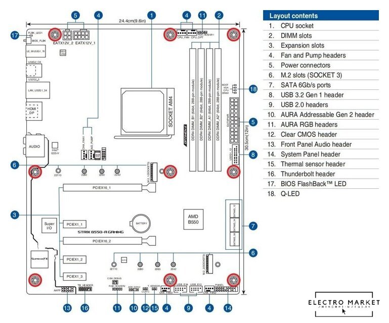 Описание внутренних разъемов | 1 x CPU Fan connector(s)1 x CPU OPT Fan connector(s)3 x Chassis Fan connector(s)1 x AIO_PUMP connector1 x AAFP connector2 x Aura RGB Strip Header(s)1 x Addressable Gen 2 header(s)1 x USB 3.2 Gen 1(up to 5Gbps) connector(s) support(s) additional 2 USB 3.2 Gen 1 port(s)2 x USB 2.0 connector(s) support(s) additional 4 USB 2.0 port(s)1 x M.2 Socket 1 with M key, type 2242/2260/2280/22110 storage devices support(SATA & PCIe 4.0 x4 mode)1 x M.2 Socket 2 with M key, type 2242/2260/2280/22110 storage devices support (SATA & PCIE 3.0 x 4 mode)6 x SATA 6Gb/s connector(s)1 x Thunderbolt header(s)1 x 24-pin EATX Power connector(s)1 x 8-pin ATX 12V Power connector(s)1 x 4-pin ATX 12V Power connector(s)1 x System panel(s)1 x Thermal sensor connector(s)1 x Clear CMOS jumper(s) |