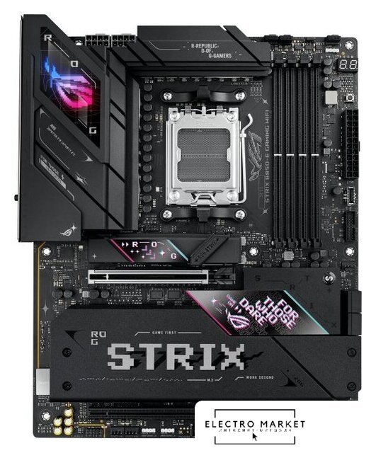 ATX, чипсет AMD X870E, память 4xDDR5 до 8200 МГц, слоты: 3xPCIe x16 5.0, 4xM.2, 802.11be (Wi-Fi 7)+Bluetooth 5.4, 16+2+2 фаз питания