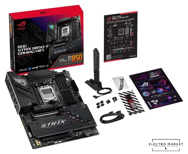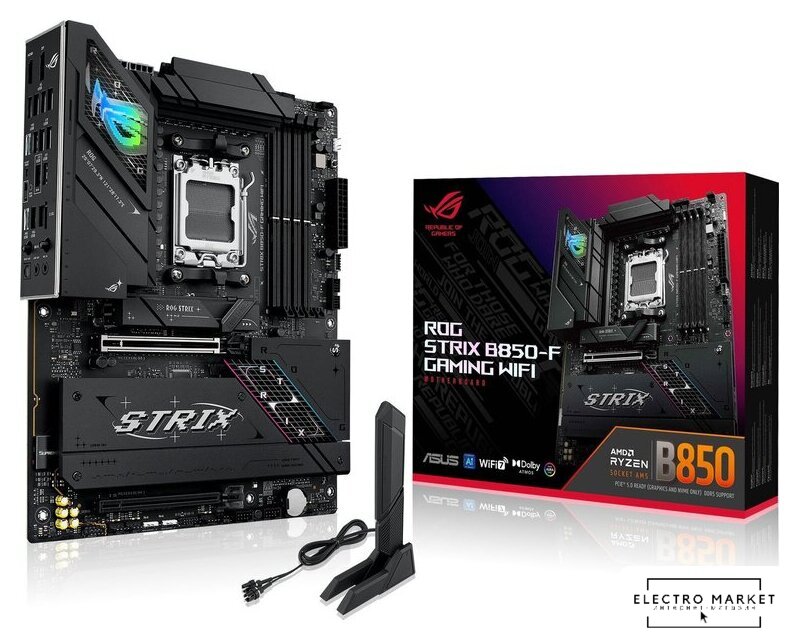 ATX, чипсет AMD B850, память 4xDDR5 до 8000 МГц, слоты: 3xPCIe x16 5.0, 3xM.2, 802.11be (Wi-Fi 7)+Bluetooth 5.4, 14+2+1 фаз питания