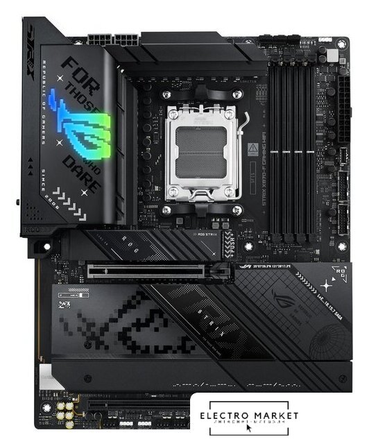 ATX, сокет AMD AM5, чипсет AMD X670E, память 4xDDR5 до 7800 МГц, слоты: 3xPCIe x16 5.0, 4xM.2, 802.11ax (Wi-Fi 6E)+Bluetooth 5.2, 18+2+1 фаз питания