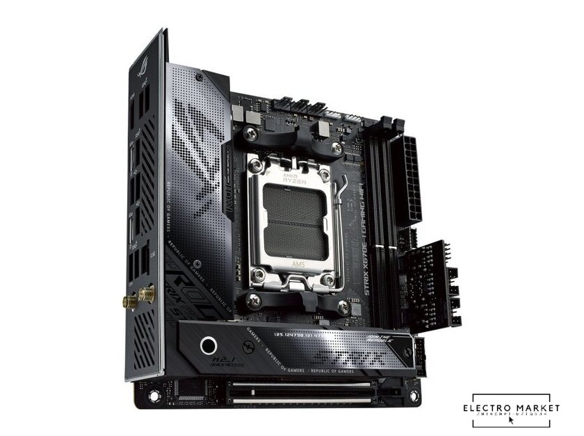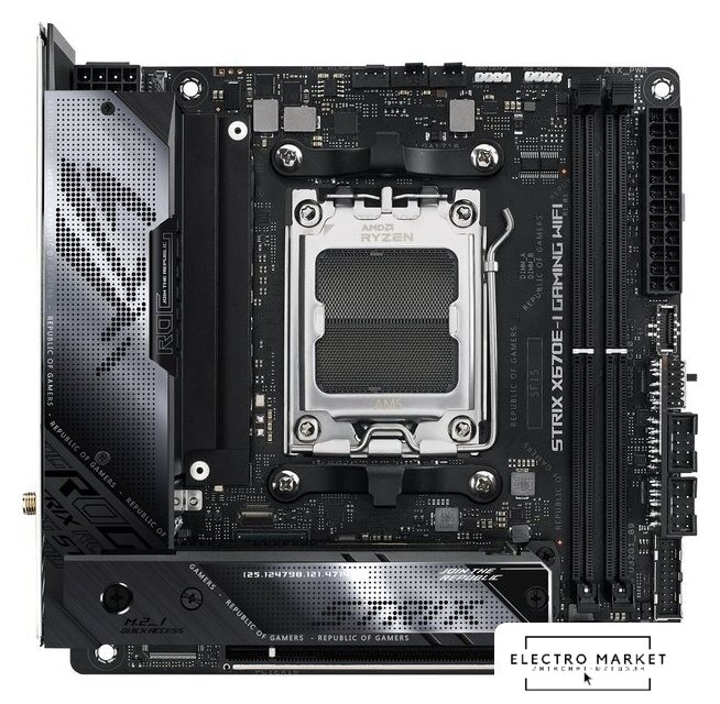 Mini-ITX, сокет AMD AM5, чипсет AMD X870, память 2xDDR5 до 8600 МГц, слоты: 1xPCIe x16 5.0, 2xM.2, 802.11be (Wi-Fi 7)+Bluetooth 5.4, 10+2+1 фаз питания