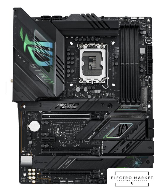 ATX, сокет Intel LGA1700, чипсет Intel Z790, память 4xDDR5 до 7800 МГц, слоты: 2xPCIe x16 5.0, 1xPCIe x4, 1xPCIe x1, 4xM.2, 802.11ax (Wi-Fi 6E)+Bluetooth 5.3, 18+1+1 фаз питания