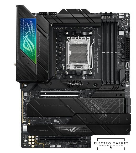 ATX, сокет AMD AM5, чипсет AMD X870, память 4xDDR5 до 8000 МГц, слоты: 2xPCIe x16 5.0, 6xM.2, 802.11be (Wi-Fi 7)+Bluetooth 5.4, 16+2+2 фаз питания
