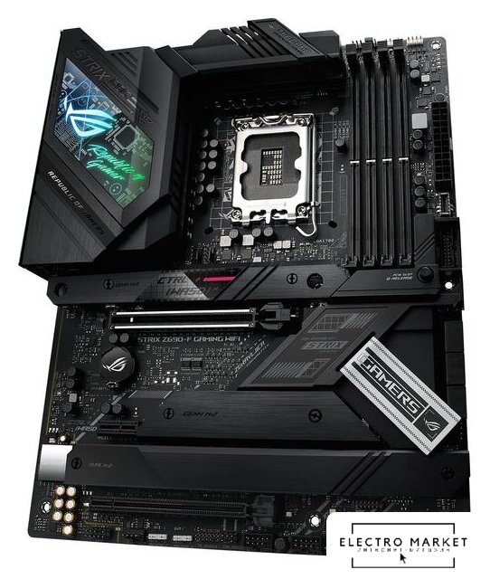 ATX, сокет Intel LGA1700, чипсет Intel Z790, память 4xDDR5 до 7200 МГц, слоты: 3xPCIe x16 5.0, 5xM.2, 802.11ax (Wi-Fi 6E)+Bluetooth 5.3, 24+1+2 фаз питания