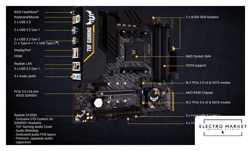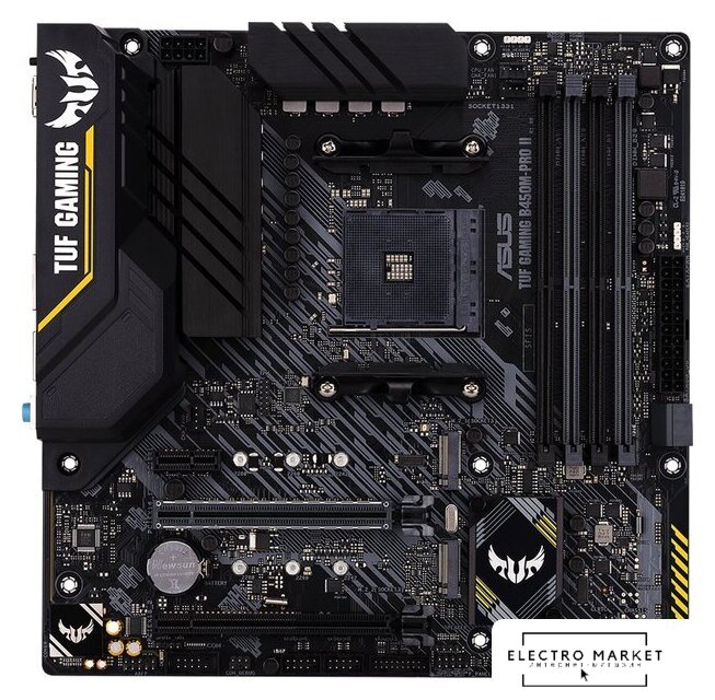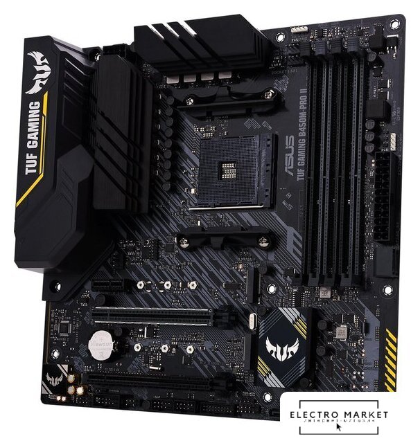 mATX, сокет AMD AM4, чипсет AMD B450, память 4xDDR4, слоты: 2xPCIe x16, 1xPCIe x1, 1xM.2