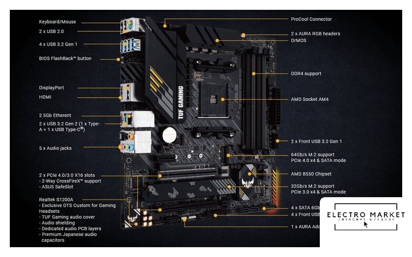 mATX, сокет AMD AM4, чипсет AMD B550, память 4xDDR4, слоты: 2xPCIe x16, 1xPCIe x1, 2xM.2