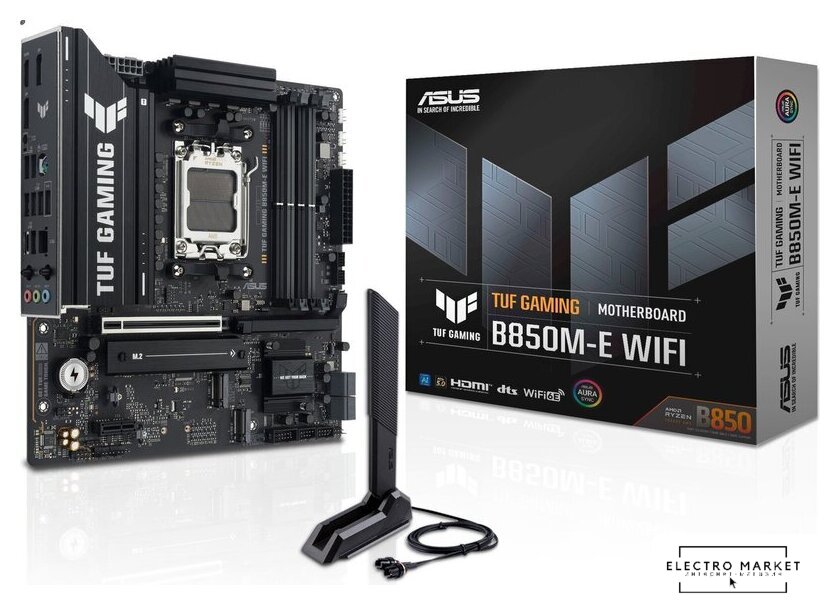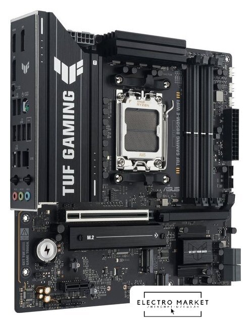 mATX, чипсет AMD B850, память 4xDDR5 до 8200 МГц, слоты: 2xPCIe x16 5.0, 2xM.2, 802.11ax (Wi-Fi 6E)+Bluetooth 5.3, 12+2+2 фаз питания