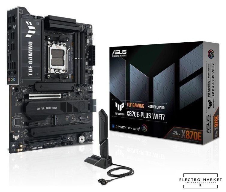 ATX, сокет AMD AM5, чипсет AMD X870, память 4xDDR5 до 8000 МГц, слоты: 2xPCIe x16 5.0, 3xM.2, 802.11be (Wi-Fi 7)+Bluetooth 5.4, 14+2+1 фаз питания