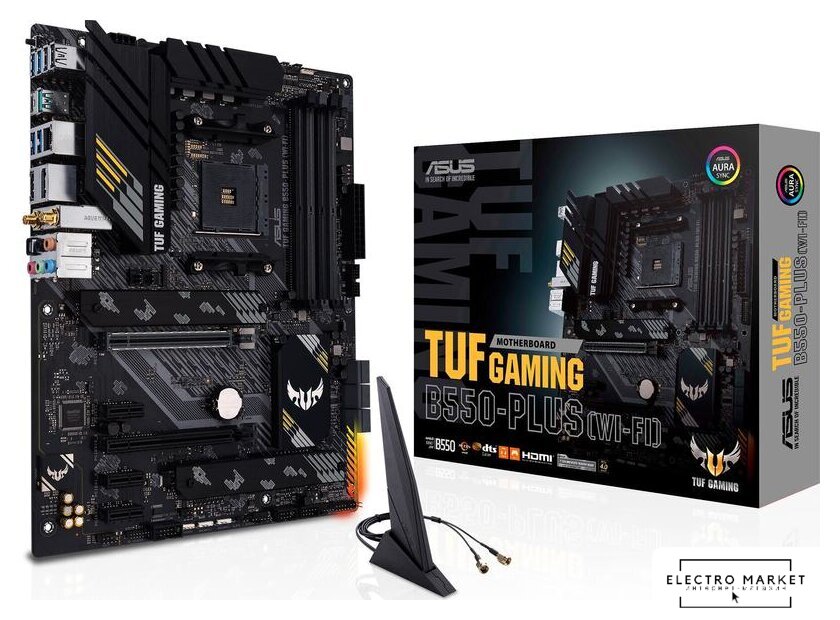 ATX, сокет AMD AM4, чипсет AMD B550, память 4xDDR4 до 4866 МГц, слоты: 2xPCIe x16 4.0 и 3.0, 2xPCIe x1, 2xM.2, 10+2+1 фаз питания