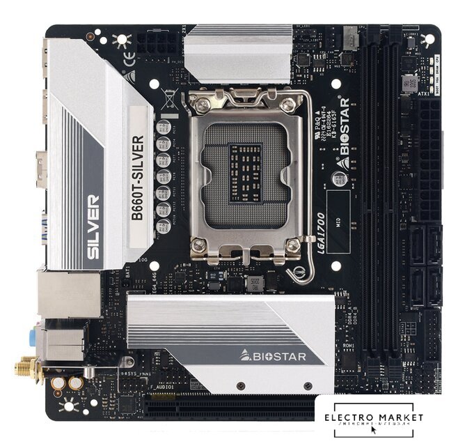 mATX, сокет Intel LGA1700, чипсет Intel B660, память 4xDDR4 до 5333 МГц, слоты: 3xPCIe x16 4.0, 2xM.2, 802.11ax (Wi-Fi 6)+Bluetooth 5.2