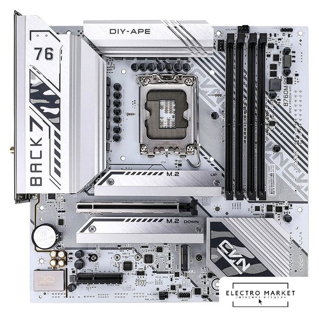 mATX, сокет Intel LGA1700, чипсет Intel Z790, память 4xDDR5 до 7200 МГц, слоты: 1xPCIe x16 5.0, 1xPCIe x4, 3xM.2, 12+1+1 фаз питания