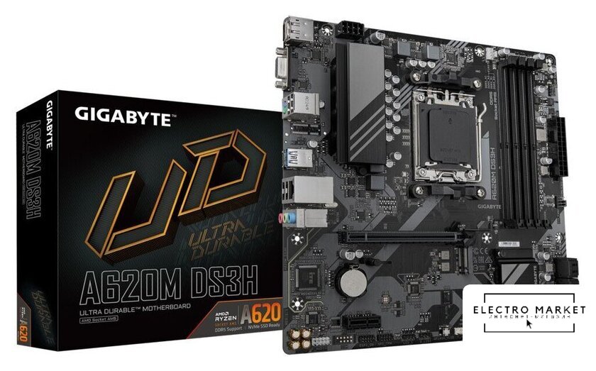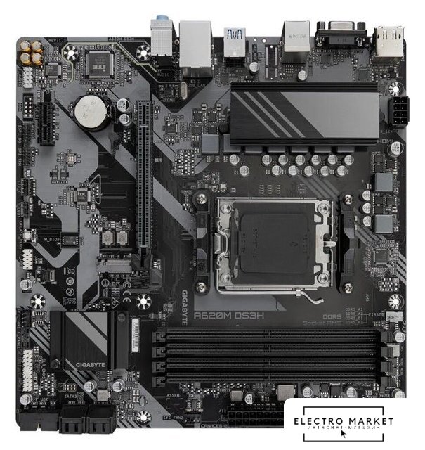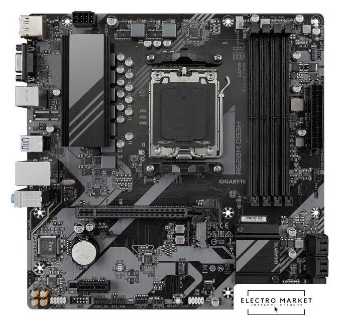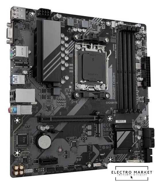 mATX, сокет AMD AM5, чипсет AMD A620, память 4xDDR5, слоты: 1xPCIe x16, 2xPCIe x1, 2xM.2