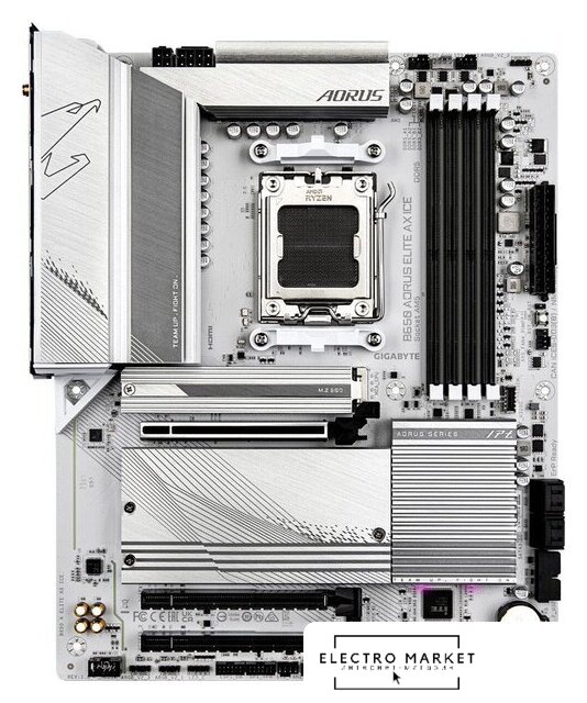 mATX, чипсет AMD X870, память 4xDDR5 до 8200 МГц, слоты: 2xPCIe x16 5.0, 2xM.2, 802.11be (Wi-Fi 7)+Bluetooth 5.4, 14+2+2 фаз питания