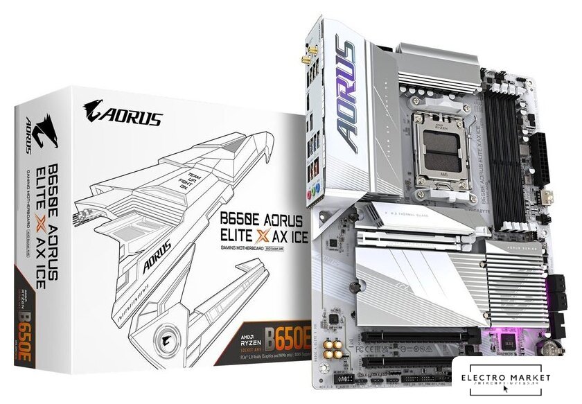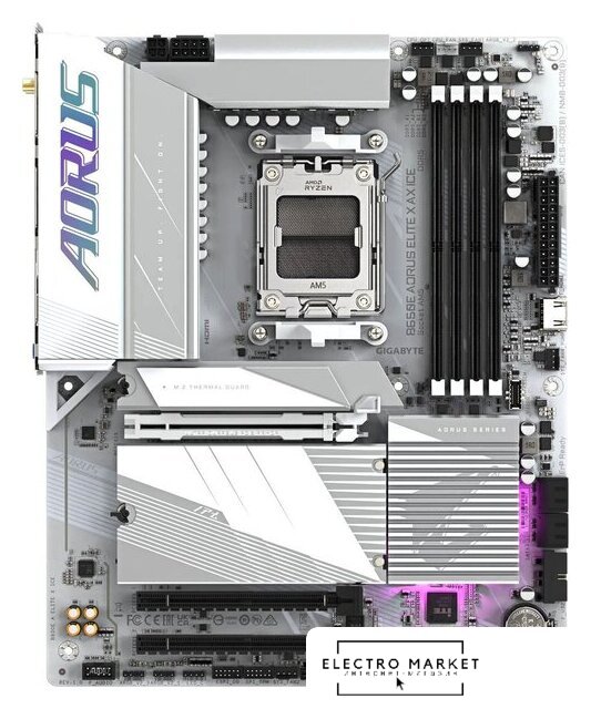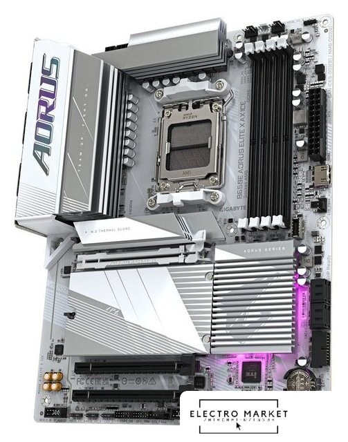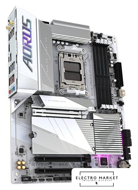 ATX, сокет AMD AM5, чипсет AMD X870, память 4xDDR5 до 8200 МГц, слоты: 3xPCIe x16 5.0, 4xM.2, 802.11be (Wi-Fi 7)+Bluetooth 5.4, 16+2+2 фаз питания