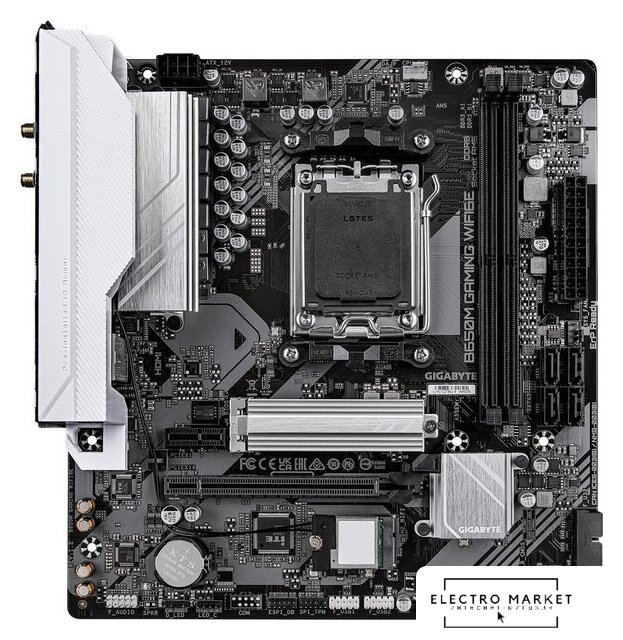 mATX, сокет AMD AM5, чипсет AMD B650, память 4xDDR5 до 7200 МГц, слоты: 1xPCIe x16 4.0, 2xPCIe x1, 2xM.2