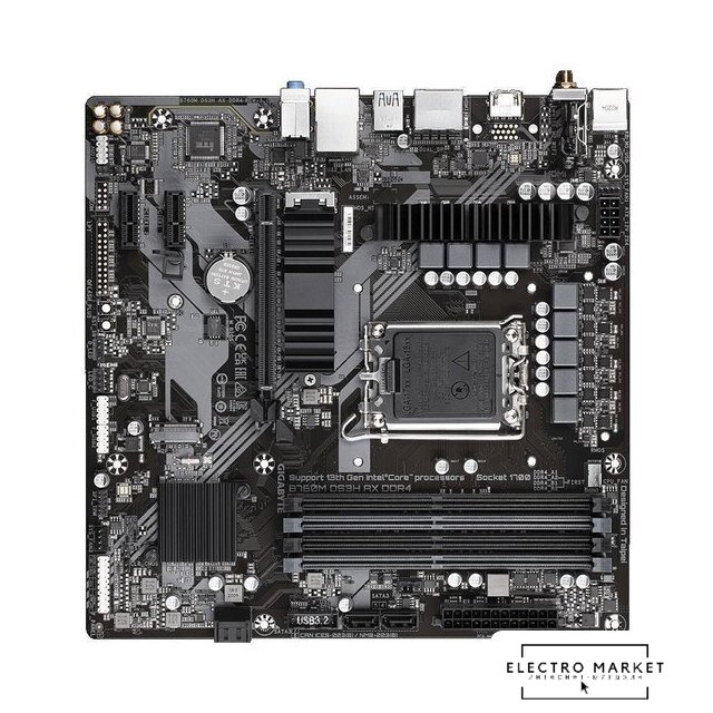 mATX, сокет Intel LGA1700, чипсет Intel B760, память 2xDDR4 до 5333 МГц, слоты: 1xPCIe x16 4.0, 2xPCIe x1, 2xM.2
