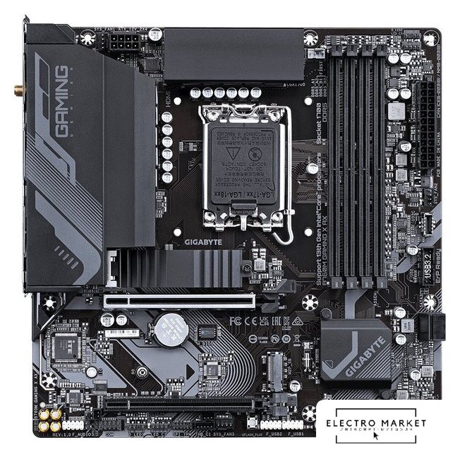 mATX, сокет Intel LGA1700, чипсет Intel B760, память 4xDDR5 до 6200 МГц, слоты: 1xPCIe x16 4.0, 2xPCIe x1, 2xM.2