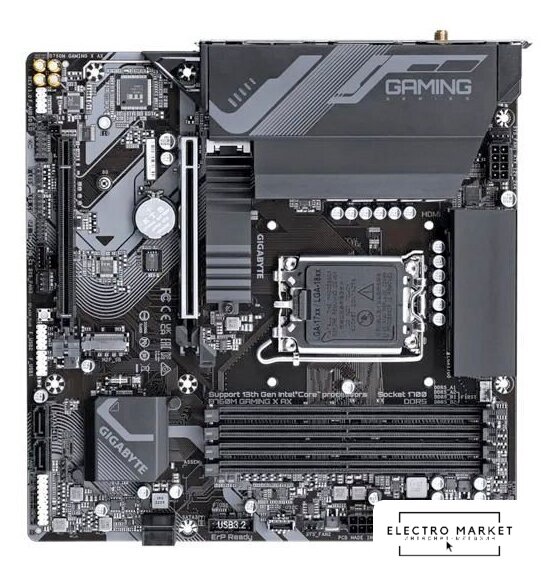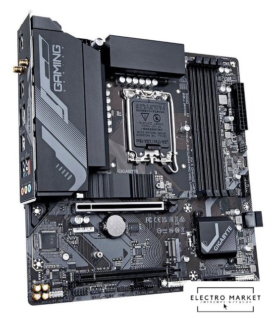 mATX, чипсет Intel B760, память 4xDDR5 до 5600 МГц, слоты: 2xPCIe x16 5.0, 2xM.2, 802.11ax (Wi-Fi 6E)+Bluetooth 5.3, 8+1+1 фаз питания
