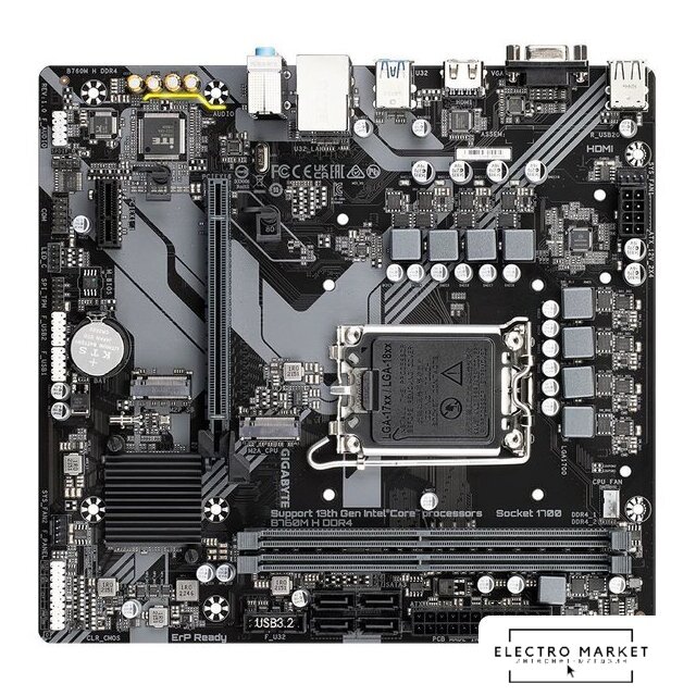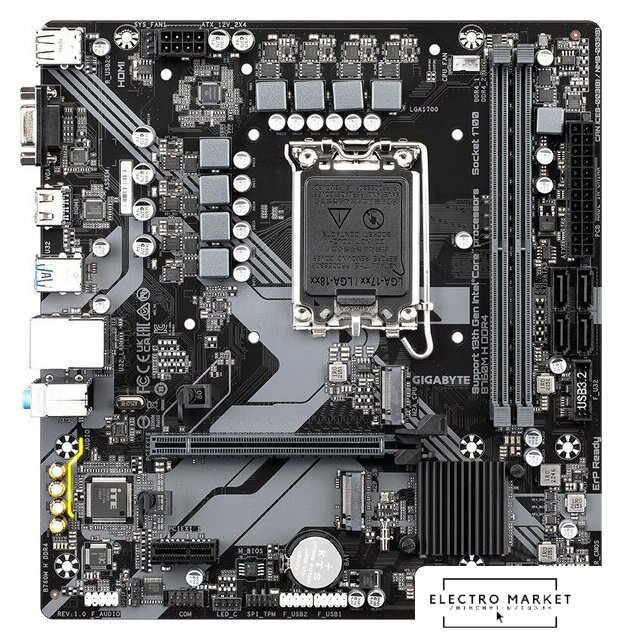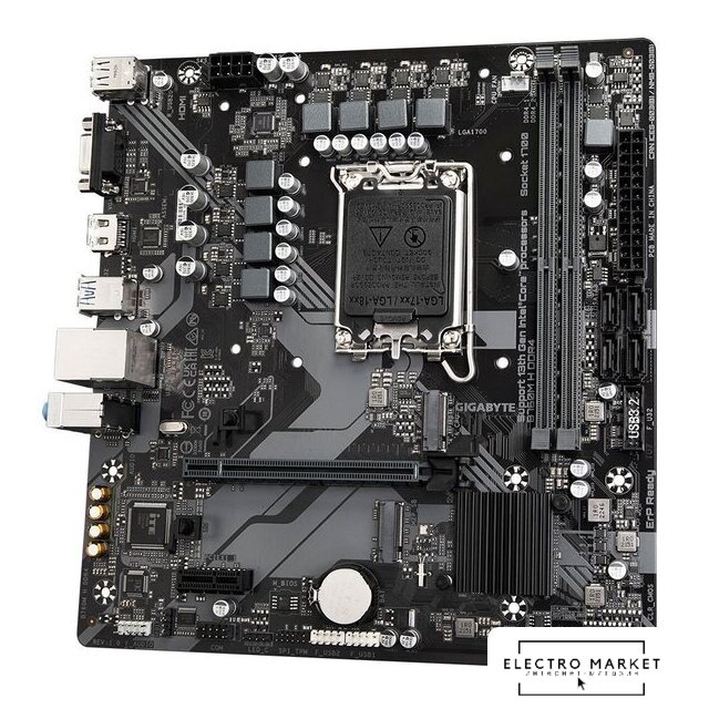 mATX, сокет Intel LGA1700, чипсет Intel B760, память 2xDDR4 до 5333 МГц, слоты: 1xPCIe x16 4.0, 2xPCIe x1, 2xM.2